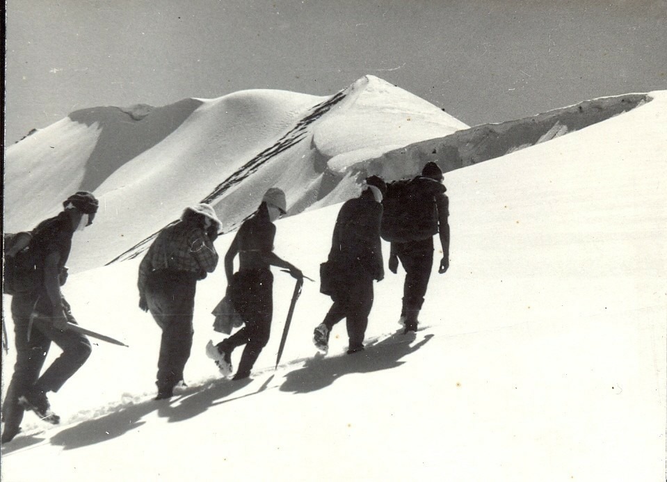 Павел Шпинь рассказывает: из поселка участники экспедиции поднимались на ледники, а он, маленький мальчик, там играл.