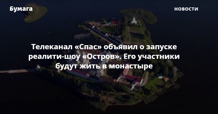 Телеканал «Спас» запускает реалити-шоу «Остров». Его участникам предлагают прожить в статусе послушника в Нило-Столобенской пустыни на острове в озере Селигер, сообщает РБК.