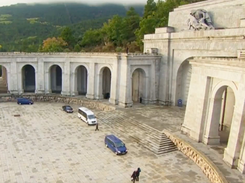 Гроб на вертолете был доставлен на кладбище после эксгумации из могилы в базилике в Долине Павших, затем погружен в катафалк, который в сопровождении полицейских автомобилей подъехал к месту захоронения - фамильному склепу, где сейчас покоится вдова Франко Кармен Поло, передает "Интерфакс".