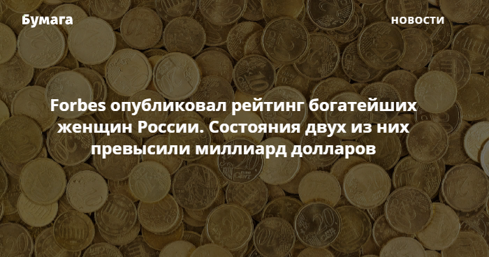 Журнал Forbes опубликовал ежегодный рейтинг самых богатых женщин России. «Бумага»