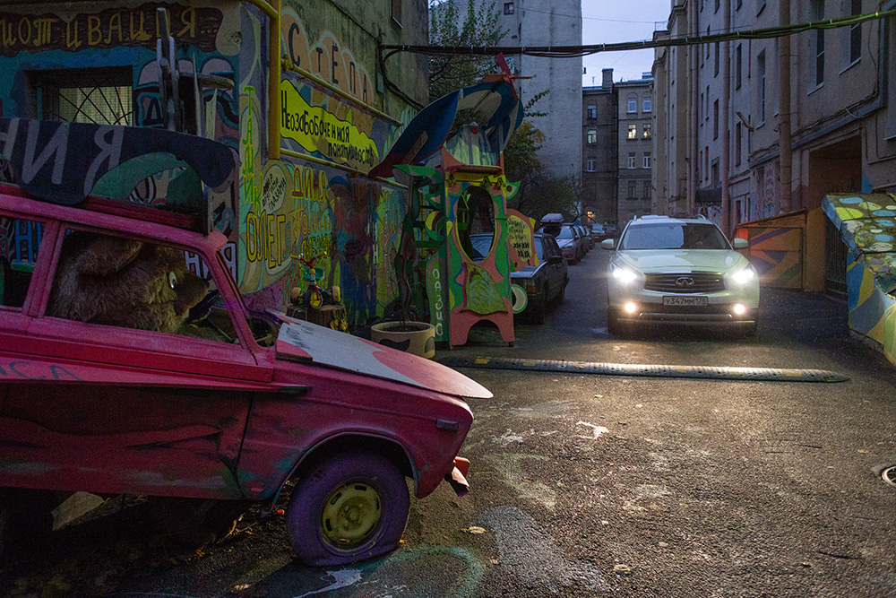— В какой-то момент машины во дворе встали задницами к друг другу, я раскрасил их, потом поставил на возвышение. С хозяевами договорился. Писать имена [на стенах] стал потому, что у них самая сильная энергетика. Людей нарекают не просто так, такие надписи всегда вызывают радость и восторг.