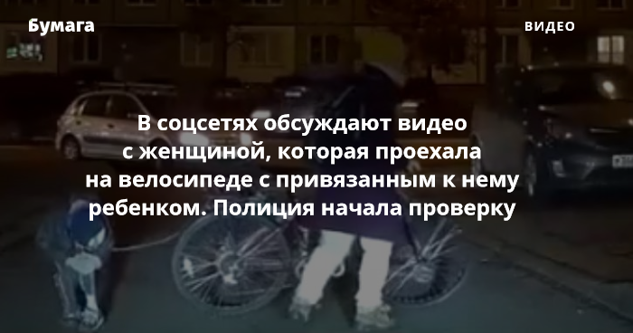 В социальных сетях опубликовали видео, на котором женщина на велосипеде выехала на проезжую часть вместе с ребенком на самокате. При этом мальчик был привязан к велосипеду, сообщили очевидцы.