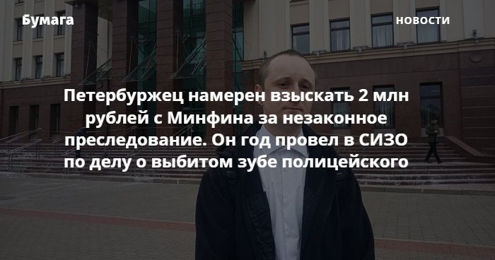 Петербуржец Михаил Цакунов подал иск к Министерству финансов с требованием компенсации в 2 млн рублей за незаконное уголовное преследование, сообщает объединенная пресс-служба судов города.