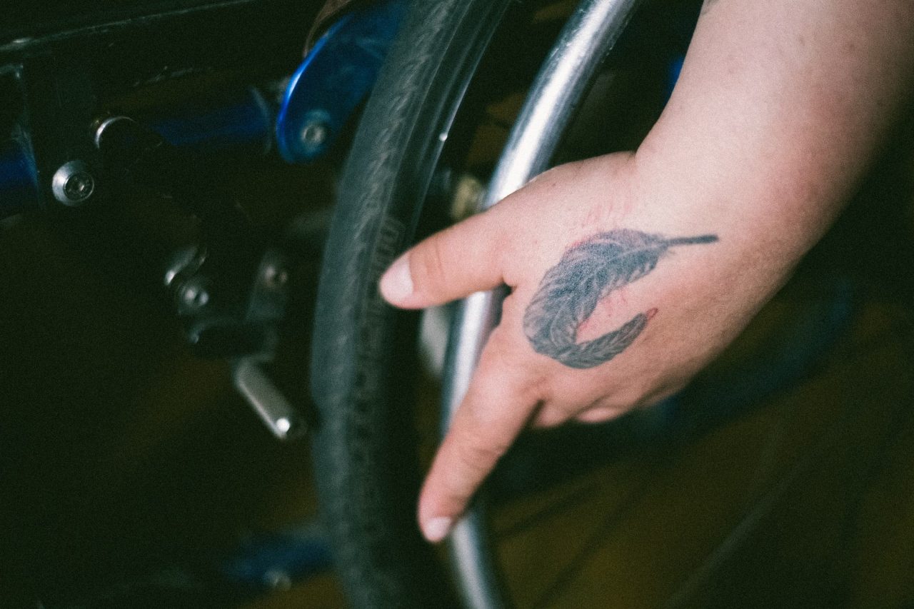 Татуировка на руке ЭвелиныФото: Мария Ионова-Грибина для ТД — Честно, да? Вот те редкие вылазки, которые были, когда я еще не была активна, — это было классно. Но мне не приходилось прилагать много усилий, чтобы куда-то добраться. Когда тебя везут, не надо высматривать пандусы. Я смотрела на дома, на огни, и это были такие эмоции: да, красивый город.