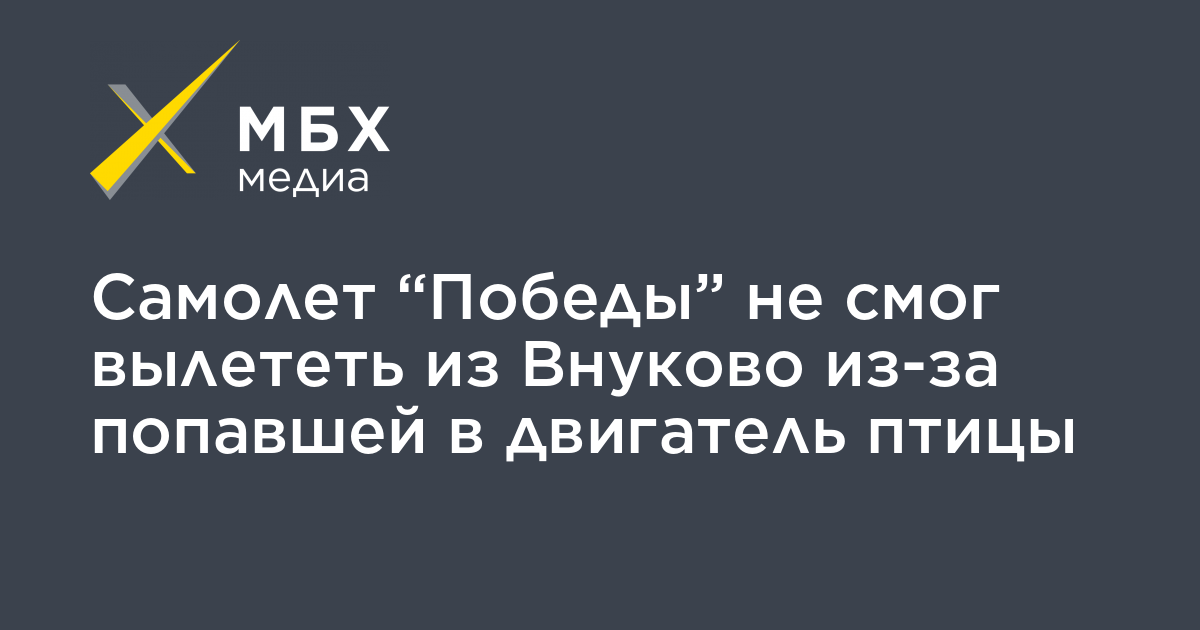 Самолет авиакомпании «Победа» не смог вылететь из московского аэропорта Внуково в Братиславу из-за птицы, которая попала в двигатель, сообщает РИА Новости со ссылкой на источник.