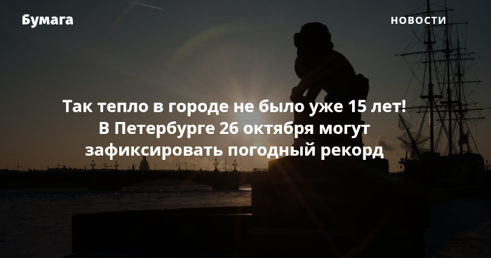 26 октября в Петербурге может быть зафиксирован температурный рекорд. Об этом рассказал специалист центра «Фобос» Михаил Леус.