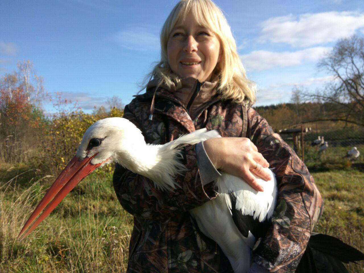 – Это была Варечка – мой любимый аист, – и Марина рассказывает историю: Варечку привезли поздно в октябре, оставили на зимовку, а когда выпустили, оказалось, что птица утратила миграционный инстинкт. Летом Варя жила во дворе, осенью двинулась было на юг, но дальше ближайшей деревни не улетела. Пришлось забрать ее домой, в теплый подвал.