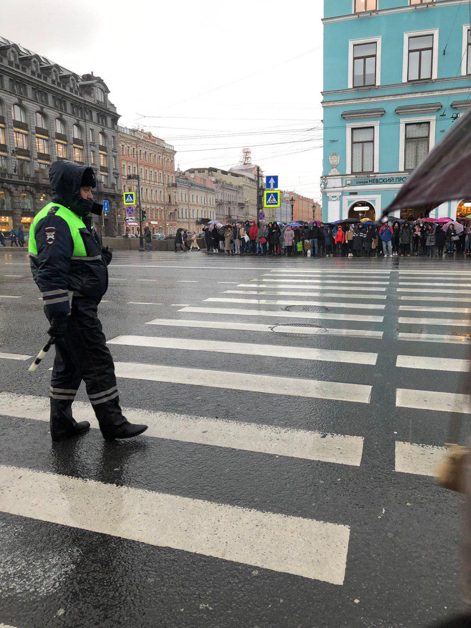 Днем 27 октября перекрыли движение по Невскому проспекту в районе канала Грибоедова. Об этом сообщает корреспондент «Бумаги» и очевидцы в соцсетях.