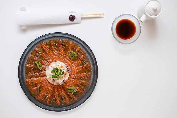 В суши-бистро можно попробовать ролл с лососем, бататом и авокадо, запеченные щечки тунца с пюре из сельдерея и трюфельным соусом, салат с лангустинами. Есть также мини-бургеры с крабом. На десерт предлагают чизкейк на зеленом чае или японские мочи (пирожные из тонкого рисового теста с начинкой).