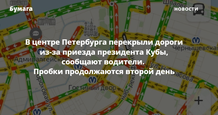27 октября перекрыли движение по Невскому проспекту в районе канала Грибоедова. Это также могло быть связано с приездом президента Кубы.