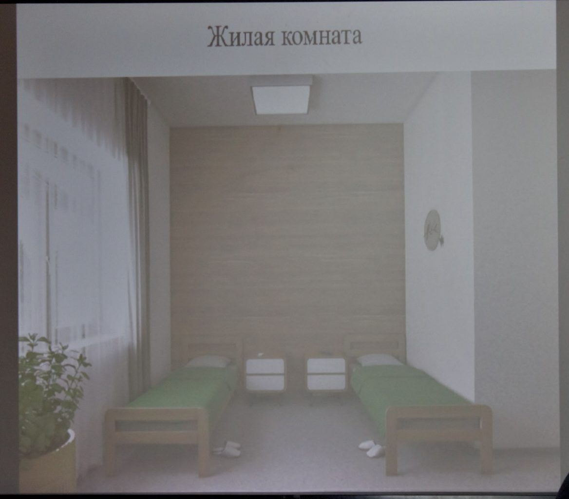 На деле оказалось, что в швейцарском стиле будет только отделка корпусов. Под Некрасовкой собираются строить два здания на 200 женщин каждое. Внутри они, как и любой ПНИ, будут больше похожи на больницу, хотя, по обещаниям властей, и хорошо отремонтированную: коридор, вдоль которого размещены палаты вместимостью от одного до четырех человек, плюс администрация, клуб культуры и отдыха и баня.