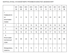 Сигналы. По мнению Дениса Волкова, рост боязни произвола властей — во многом реакция на пенсионную реформу на фоне роста претензий к власти и падения реальных доходов. Среди других факторов — жесткие действия правоохранительных сил в период московских протестов и дело журналиста Ивана Голунова, считает политолог Константин Калачев: «Это ситуативное реагирование, а все остальное архетипично. Хотя и страх стать жертвой произвола властей тоже архетипичен, но тут у него появился мощный триггер».