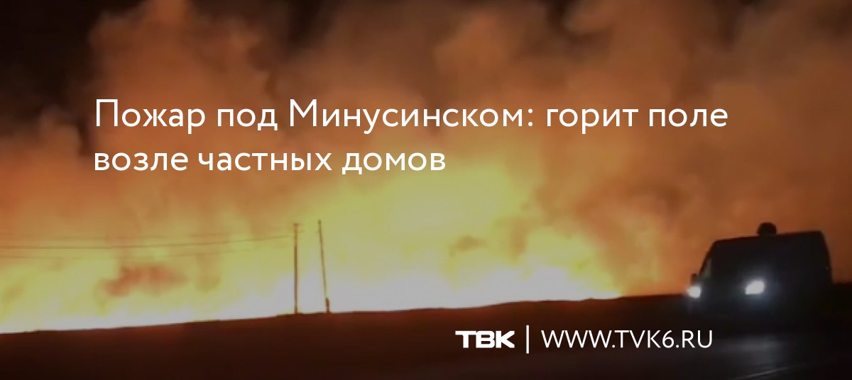 Пожар под Минусинском: горит поле возле частных домов