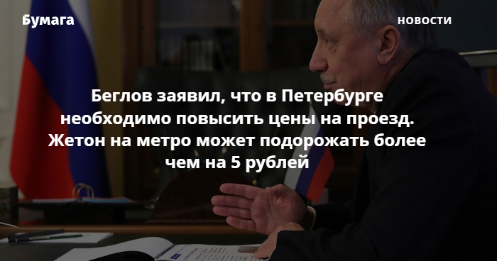 Беглов заявил, что для повышения качества транспортного обслуживания нужно переосмыслить тарифную политику. По его словам, в 2005 году расходы метрополитена покрывались его доходами практически в полном объеме, но сейчас — лишь на 56 %.