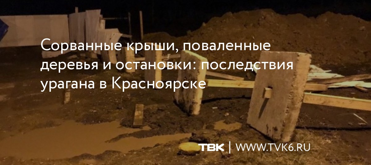 Сорванные крыши, поваленные деревья и остановки: последствия урагана в Красноярске