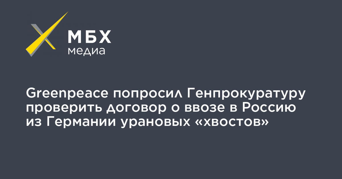 Российское отделение Greenpeace обратилось в Генпрокуратуру с просьбой провести проверку договора о ввозе в Россию из Германии побочных продуктов обогащения урана, так называемых урановых «хвостов», сообщили «МБХ медиа» в пресс-службе организации.