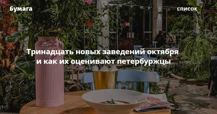 «Бумага» выбрала тринадцать заведений, открывшихся в Петербурге в октябре, и узнала, что о них говорят посетители, фуд-блогеры и сами владельцы.