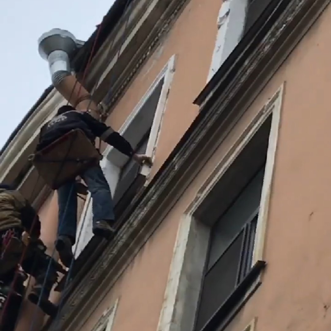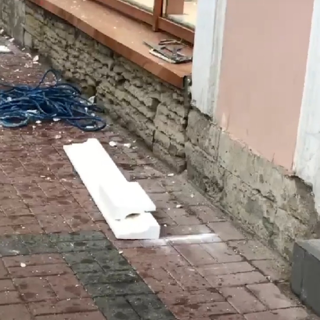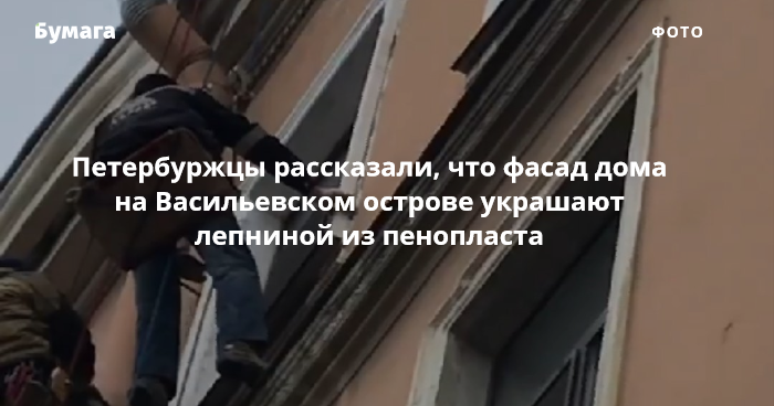 Участники проекта «Двери с помоек» рассказали в социальных сетях, что на фасаде здания на Васильевском острове устанавливают лепнину из пенопласта.
