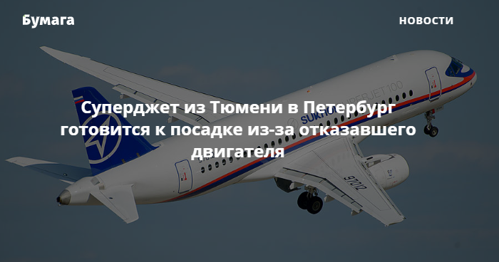 Суперджет из Тюмени в Петербург готовится к аварийной посадке из-за отказавшего двигателя