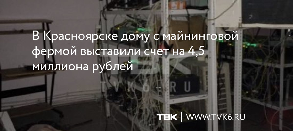 В Красноярске дому с майнинговой фермой выставили счет на 4,5 миллиона рублей