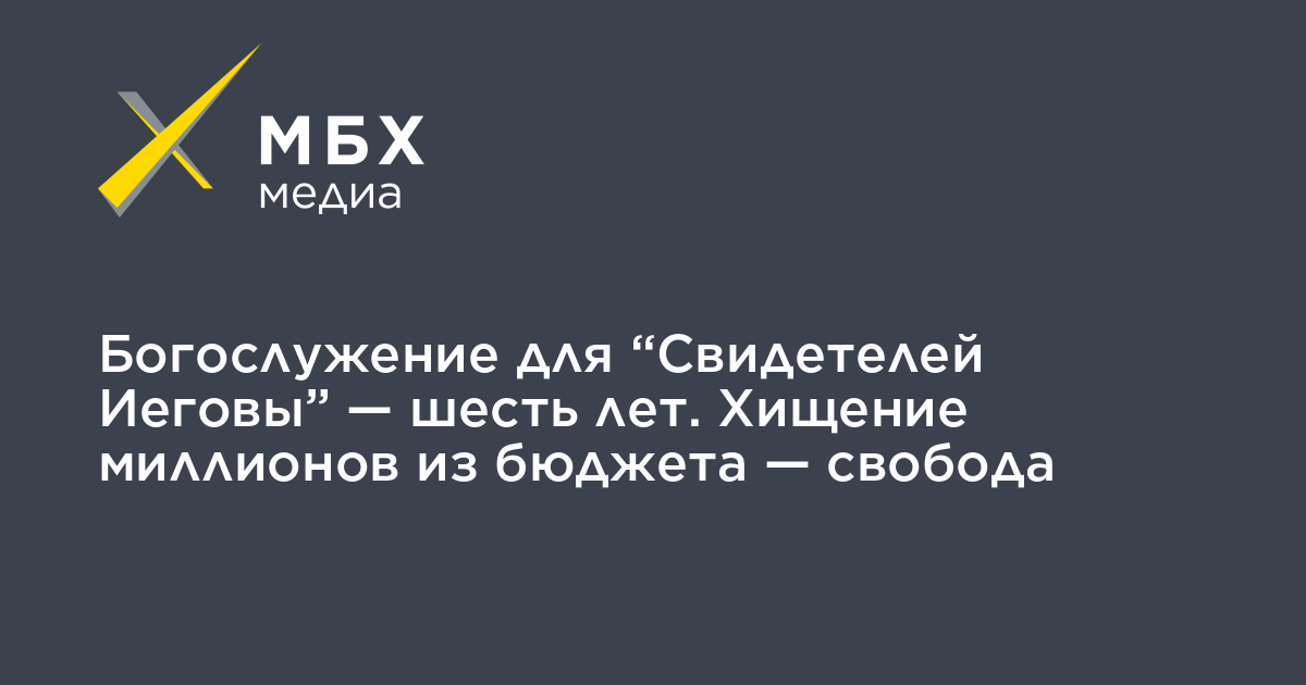 Богослужение для «Свидетелей Иеговы» — шесть лет. Хищение миллионов из бюджета — свобода