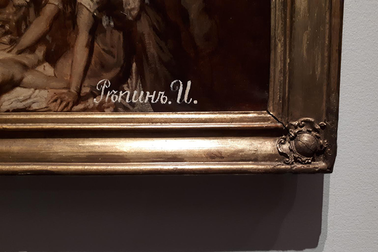 Итак, петербургская выставка не только показывает «парадного» Репина, обрушивая на зрителя сплошной поток шедевров, но и обнажает чуть более «дозволенного» в рамках хитового блокбастера. Продолжая аналогию с кинопрокатом — Русский музей предлагает режиссерский монтаж фильма вместо продюсерского. Возле «Садко» вас ждет эскиз русалки — вернее, вполне земной женщины, чуть ввалившей грудь в плечи, задравшей руку к беспорядочно собранным волосам, бесстыже обнажившей волосатые подмышки и складки на торсе. Не Дега, но на удивление близко — не видя этюда, не каждый поверит, что эта натуралистичная дама перекочует в «Садко», обретя академические округлость и плавность линий, а также эстетику динамики вместо угловатой усталости натурщицы. В углу зала с «Садко» скромно улыбается «Иванушка-дурачок» — декоративная тарелка, расписанная Репиным в Русской керамической мастерской в Париже в 1876 году. Элитная «сувенирка», которой не было в Третьяковке, и просто нечто декоративное, милое и снижающее пафос.