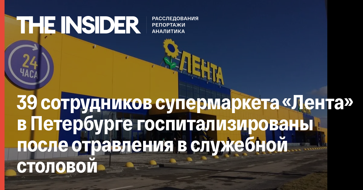 39 сотрудников супермаркета «Лента» в Петербурге госпитализированы после отравления в служебной столовой