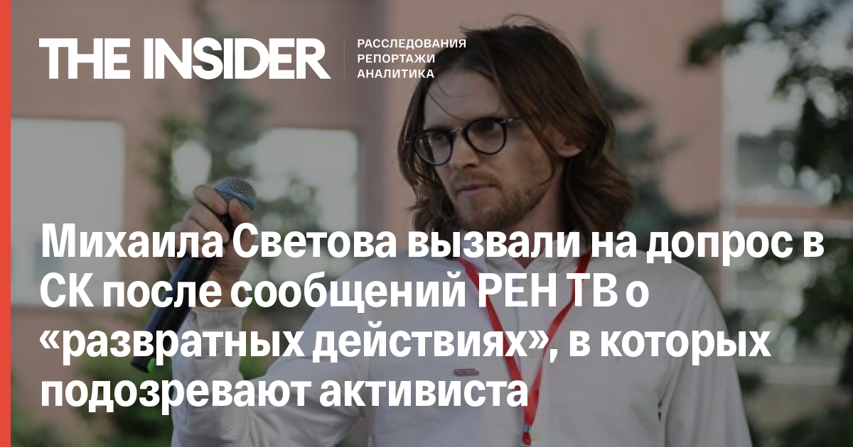Михаила Светова вызвали на допрос в СК после сообщений РЕН ТВ о «развратных действиях», в которых подозревают активиста