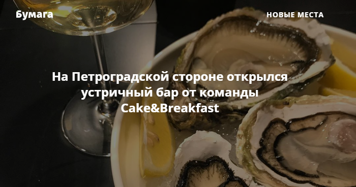 Это новый устричный бар в Петербурге от Cake&Breakfast