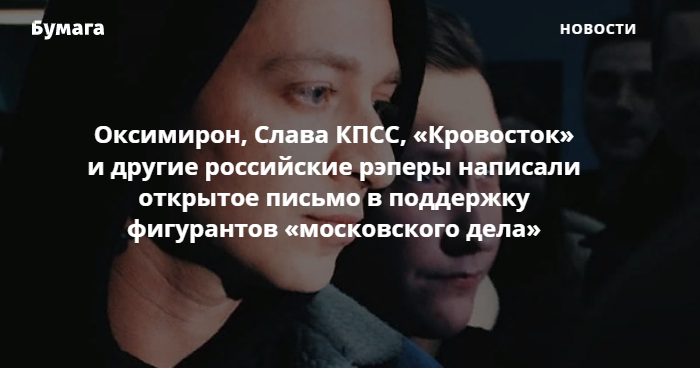 Оксимирон, Слава КПСС, «Кровосток» и другие российские рэперы написали открытое письмо в поддержку фигурантов «московского дела»