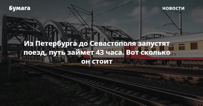 С вокзалов Петербурга и Москвы запустят поезда до Севастополя и Симферополя, соответственно. Продажи билетов стартовали в пятницу, 8 ноября. Они будут стоить от 3500 рублей из Петербурга и от 2900 рублей из Москвы. Об этом сообщил оператор маршрута «Гранд сервис экспресс».