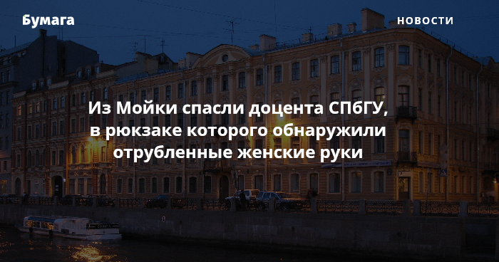 Из Мойки спасли историка из СПбГУ. В его рюкзаке были женские руки
