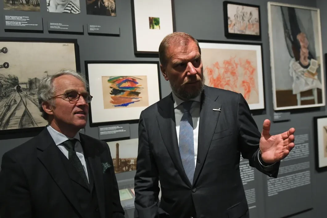 Эта коллекция впечатляет, там больше пяти тысяч работ. Перед нами не просто «типичный соцреализм», но и картины первого ряда, стоящие больших денег на аукционах и охотно приглашаемые на зарубежные выставки (летом из Италии, например, вернулись два полотна ИРРИ). Среди арестованного (список картин суд полностью не объявил) такие полотна, как «Над заснеженными полями» («Над снегами») и «В пути» Георгия Нисского, «Спортсменка, завязывающая ленту» Александра Дейнеки, «Три художника» Виктора Попкова. Некоторые имеют скорее исторический интерес, чем художественный, что не отменяет их ценности: взять хотя бы «Беседу президента США Франклина Делано Рузвельта с шахом Ирана Мохаммедом Реза Пехлеви. Тегеранская конференция» и пафосный двойной портрет «Климент Ворошилов и Максим Горький в тире центрального дома Красной армии» Александра Герасимова. Кстати, Ворошилова в кабинете изобразил и главный официальный портретист 20–30-х, талантливый и циничный Исаак Бродский, буржуазный стиль которого определял вкусы псевдопролетарской партийной элиты.