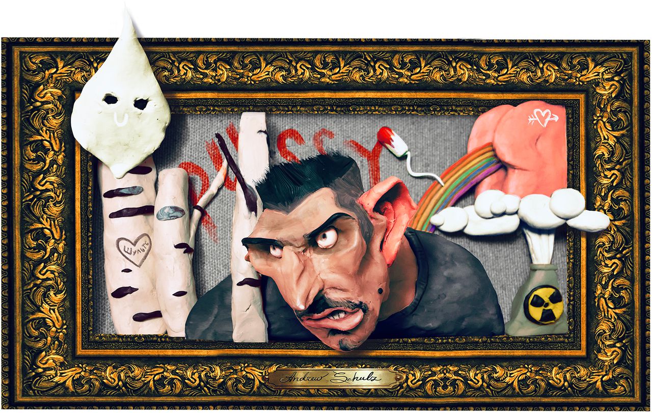 Две женщины стоят на четвереньках на круглом диване и одновременно засовывают себе в головы огромный двусторонний дилдо. Движение происходит синхронно, плавно и почти мгновенно, словно это не кусок пластика, а макаронина, которую двое случайно втягивают из тарелки с разных концов. Головы женщин встречаются на середине, и они начинают целоваться. Американский комик Эндрю Шульц сидит и смотрит на это через стол, уставленный кальянами, выпивкой и чёрными шариками с закисью азота. У него на лице выражение озадаченного кота.