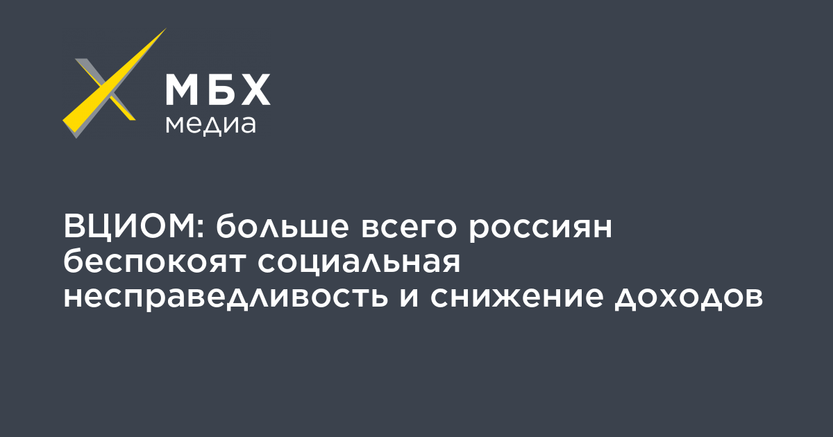 ВЦИОМ: больше всего россиян беспокоят социальная несправедливость и снижение доходов