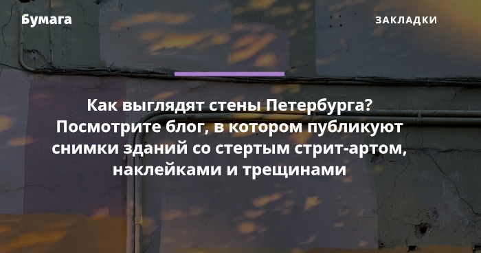 В инстаграме есть блог @stenapetra, в котором показывают, как выглядят стены Петербурга — с трещинами, наклейками и надписями.