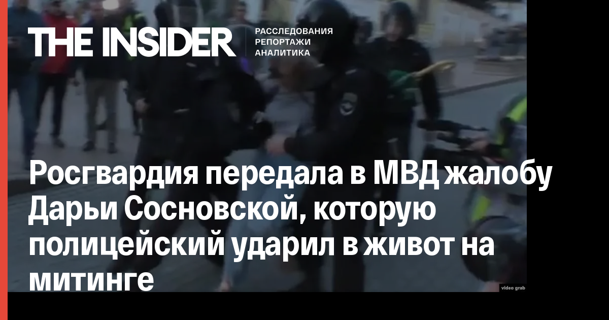 Росгвардия передала в МВД жалобу Дарьи Сосновской, которую полицейский ударил в живот на митинге