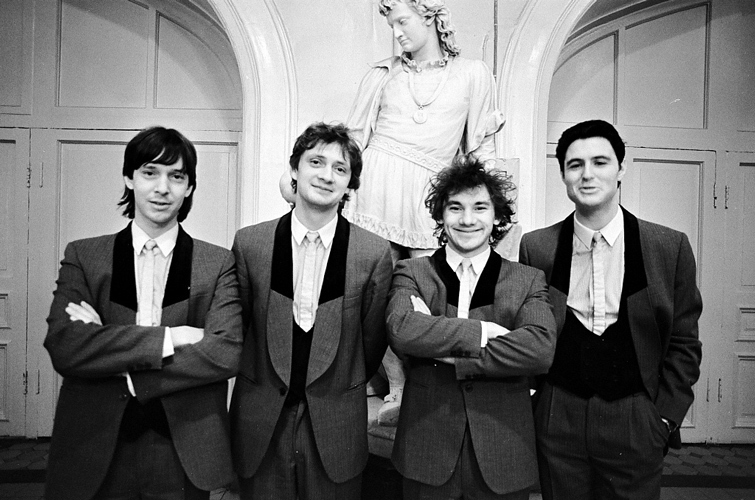 — Мне кажется, Макс сказал, что будет прикольно. Мы еще служили в армии. И на белой рубашке красные галстуки смотрелись прикольно. Либо мы увидели аккомпанирующий состав Элвиса, я вспомнить не смогу. Мы не могли найти красные галстуки, поэтому моя мама купила пионерские по 75 копеек, шелковые. Она взяла четыре военных галстука от парадной формы и обшила их красным — это были наши первые галстуки. По-моему, они до сих пор живы.