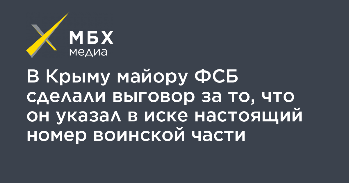 В Крыму майору пограничного управления ФСБ Александру Ткаченко сделали выговор за то, что в судебном иске к своему руководству он указал настоящий номер своей воинской части, об этом пишет «Коммерсант».