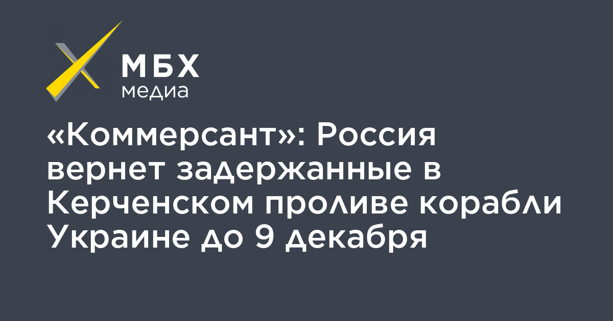 «Коммерсант»: Россия вернет задержанные в Керченском проливе корабли Украине до 9 декабря