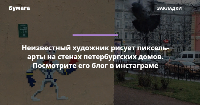 В инстаграме есть блог @net_streetart, в котором неизвестный художник публикует фотографии пиксель-артов, которые рисует на стенах домов Петербурга.