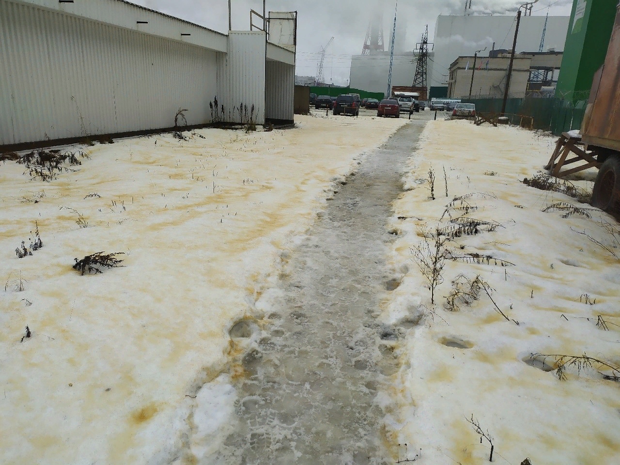 После того как туман рассеялся, снег и машины оказались покрыты желтым налетом. По словам одного из местных жителей, он с трудом поддается очистке.