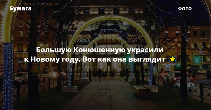 Большую Конюшенную улицу в центре Петербурга украсили в новогоднем стиле. Очевидцы выложили фотографии в соцсети.