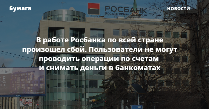 Сбой затронул всех клиентов Росбанка. Всего у Росбанка более 4 миллионов частных клиентов в 70 регионах России.