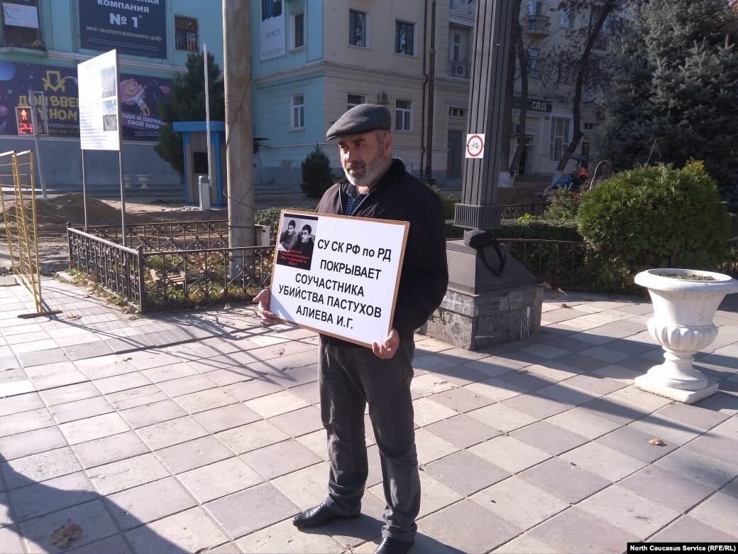 Сегодня в Махачкале отец убитых силовиками братьев Гасангусеновых снова вышел на одиночный пикет возле здания МВД Дагестана. Пикет Муртазали Гасангусенова поддержал журналист газеты "Новое Дело" Идрис Юсупов. Он и общественный деятель Лариса Бачиева сменили Муртазали и продолжили акцию.