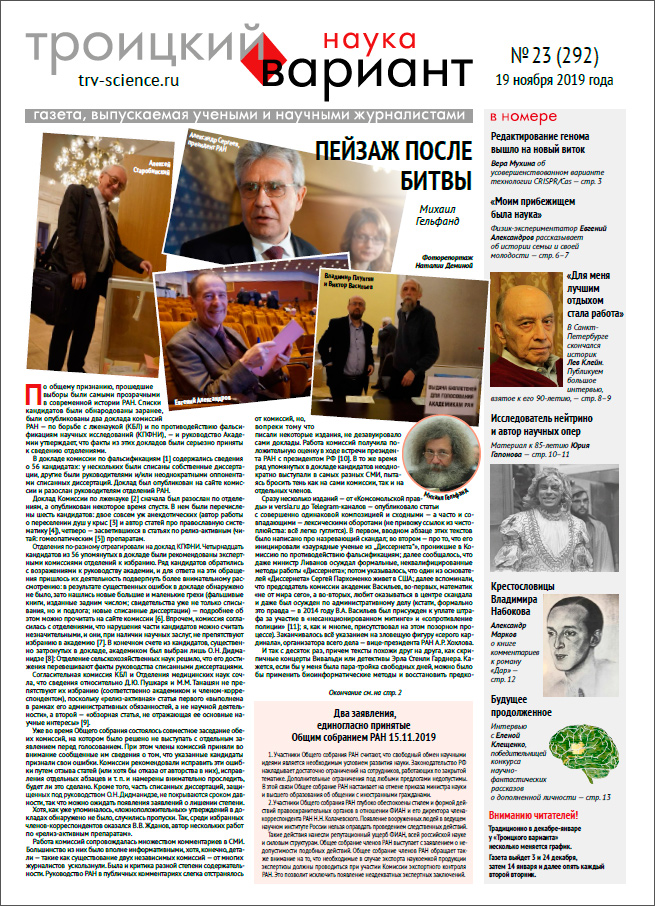 Весь номер газеты «Троицкий вариант — Наука» № 292 от 19 ноября 2019 года в PDF