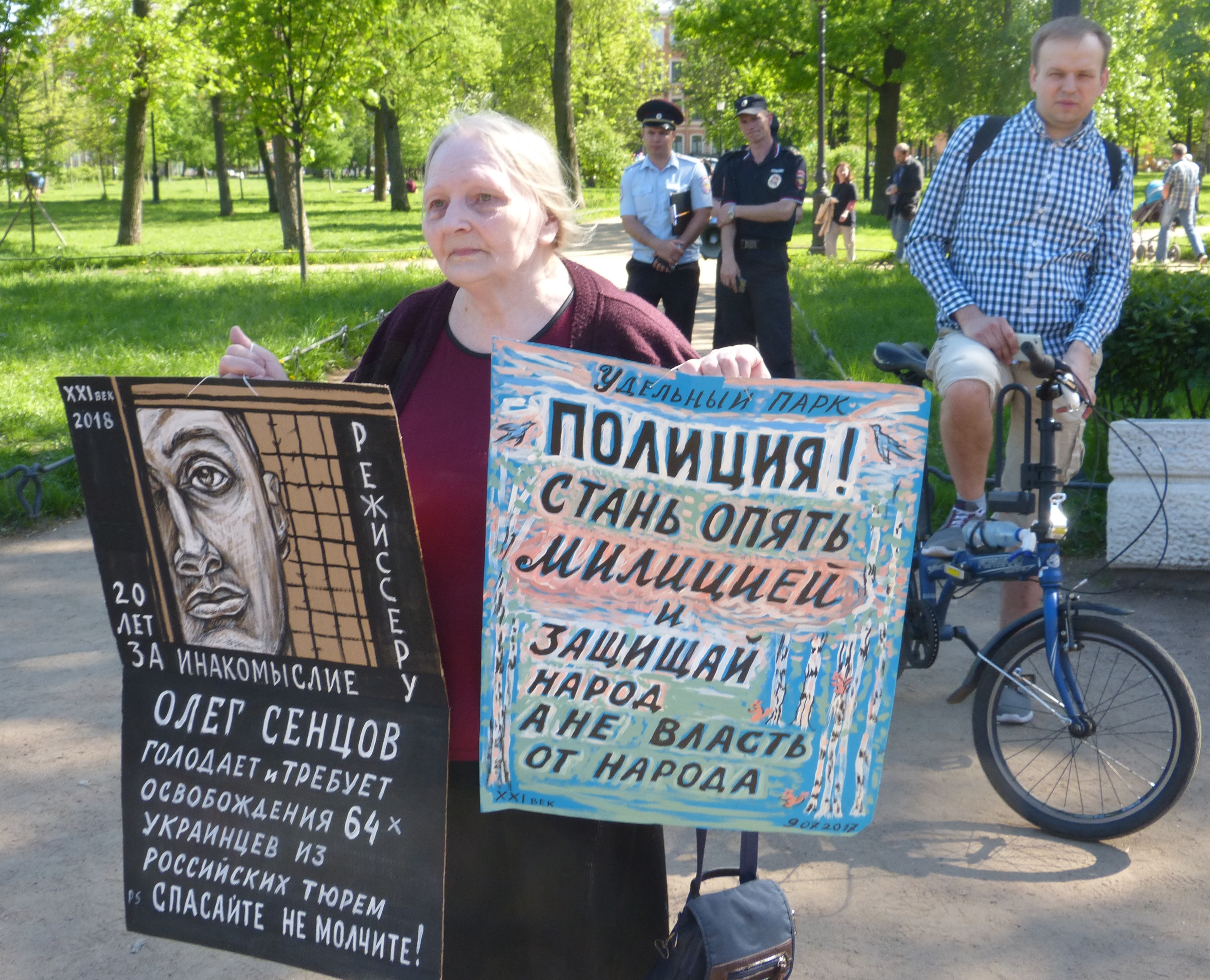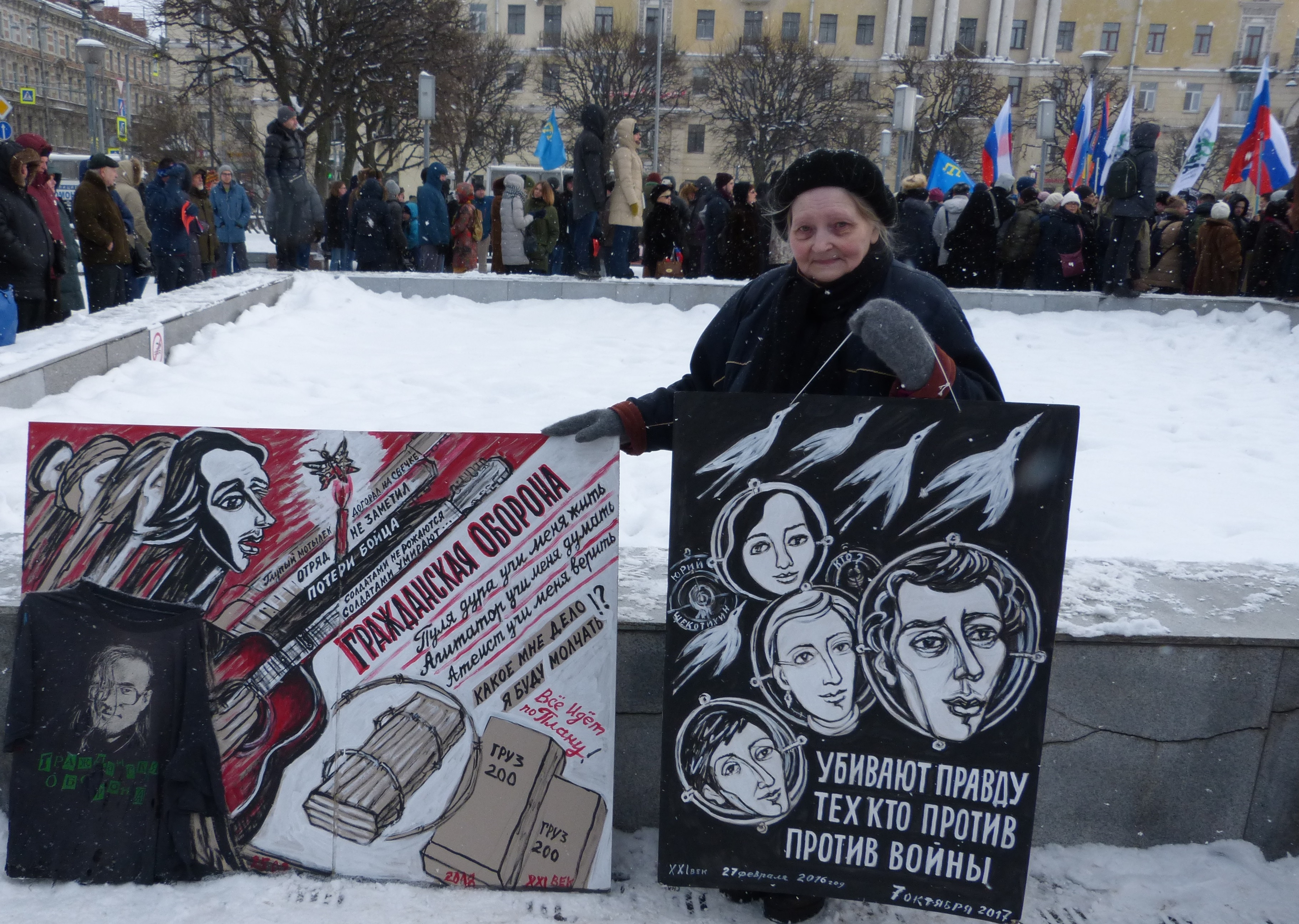 Без 74-летней художницы Елены Осиповой не обходится ни одна протестная акция в Петербурге. У нее забирают плакаты, а ее саму отвозят в полицейский участок. Но это не мешает ей снова и снова выходить на площадь. За последние несколько лет постоянного участия в различных акциях Елена Осипова стала символом петербургского протестного движения.