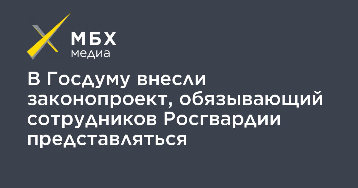 В Госдуму внесли законопроект, обязывающий сотрудников Росгвардии представляться гражданам и предъявлять служебное удостоверение при определенных обстоятельствах и при реализации конкретных служебных полномочий. Документ размещен в базе законодательной деятельности Госдумы.