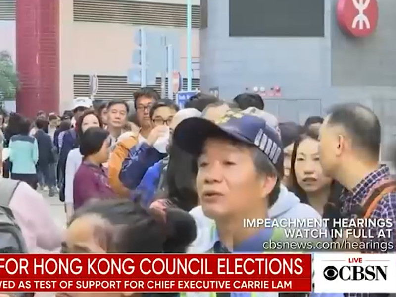 Явка на первых выборах после начала массовых протестов составила 71%, количество проголосовавших оценивается в 2,9 млн человек, сообщает Русская служба BBС. На прошлых выборах в 2015 году явка была на уровне 47%. Комментаторы рассматривают выборы как испытание поддержки главы администрации Кэрри Лэм, ставленницы Пекина, за действиями которой пристально следили протестующие.