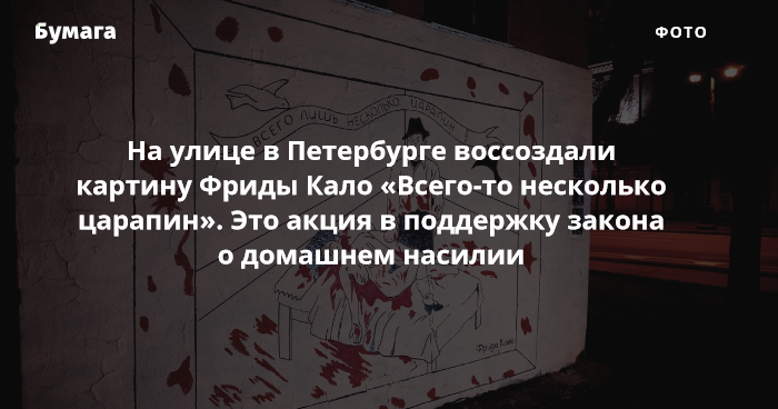 Петербургская художница Анастасия Владычкина, которая входит в арт-группу «Явь», нарисовала на трансформаторной будке стрит-арт по мотивам картины Фриды Кало «Всего-то несколько царапин».